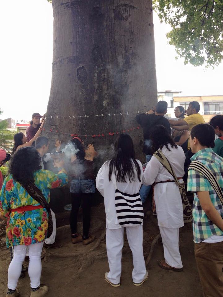 En Armenia la ancestralidad se toma el poder del territorio para que de la mano de una de las integrantes del consejo de las 13 abuelas de Colombia y una autoridad ancestral en temas de eco-aldeas los lideres de Antakarana Deyanira y Adhemar se realice una ofrenda de agradecimiento a la Ceiba mas grade y antigua del territorio, junto a ellos artistas internacionales como Biomigrant y autoridades espirituales como Lwntana compartieron con la población la consciencia Naturagente.