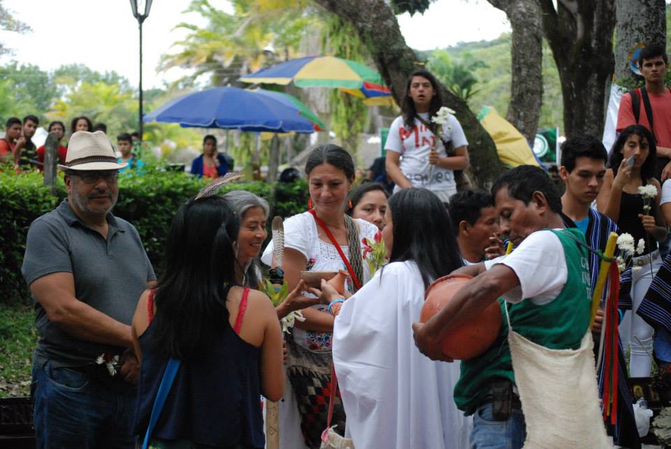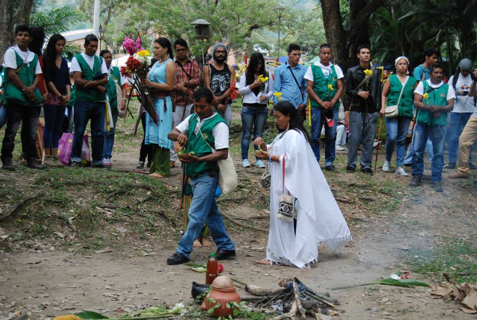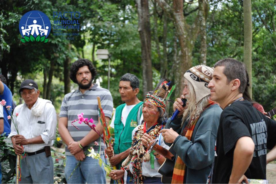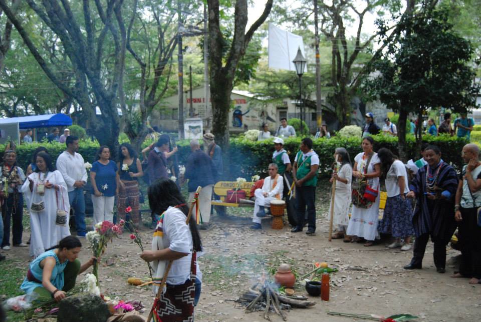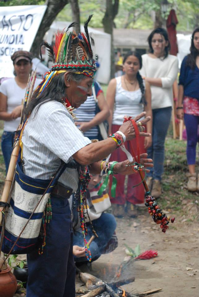 Antes de que la marcha diera inicio, el Pacto Mundial Consciente invito a varias autoridades ancestrales de diferentes territorios de Colombia incluyendo a la Guardia Indígena y el movimiento Pijao de Quintín Lame para que juntos al rededor del fuego ofrecieran en una ceremonia tradicional, las bendiciones necesarias para que el pueblo caminante despertara internamente el espíritu de vida y lucha por el territorio.