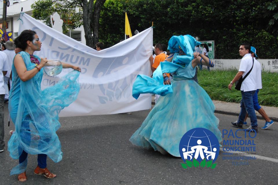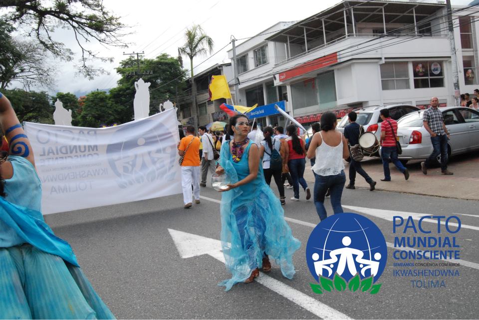 El pasado 5 de Junio de 2015 el Pacto Mundial Consciente acompaño la organización y el desarrollo de la VII Marcha Carnaval, en el marco de la cumbre por el cambio climático y las caminatas sagradas. Este encuentro que reunió a mas de 50 mil personas y tuvo como propósito despertar el territorio Pijao para que la comunidad que vive bajo las faldas de la diosa Dulima se fortalezca unida en la protección de la vida y del territorio de las diferentes empresas multinacionales como la Anglo Gold Ashanti que adelantan procesos extra-activistas de mega minería a cielo abierto que afectan y destruyen fuentes hídricas de vital importancia para las entidades vivientes que habitan el territorio.