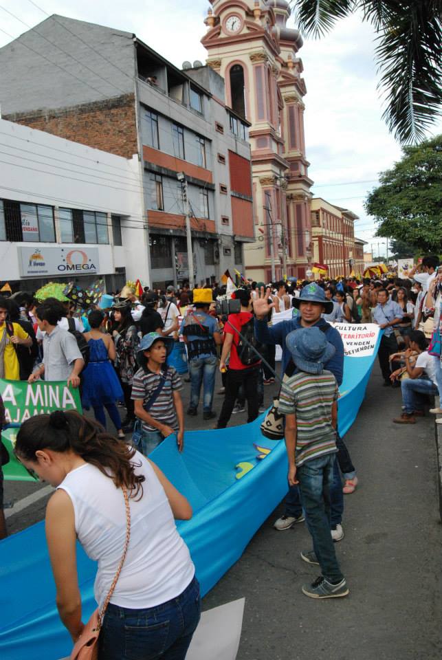 luego de una caminata por el territorio Pijao se llego a la plaza del SENA. lugar en el que mas de 50 mil personas se juntaron con el propósito de proteger el territorio Dulima de la empresa minera Anglo Gold Ashanti, escuchando las reflexiones y declaraciones de las organizaciones y la guardia indígena, así como también a los artistas que mediante una obra de títeres explicaron a los niños la importancia de los árboles y el suelo sano, la abuela Ana Maria una de las 13 abuelas del consejo de abuelas de Colombia dirigió junto a las sahumadoras de la caminata, quienes fueron la punta de la lanza de la movilización, unas hermosas danzas circulares de paz que fueron la oración de los pueblos por la vida.