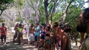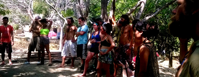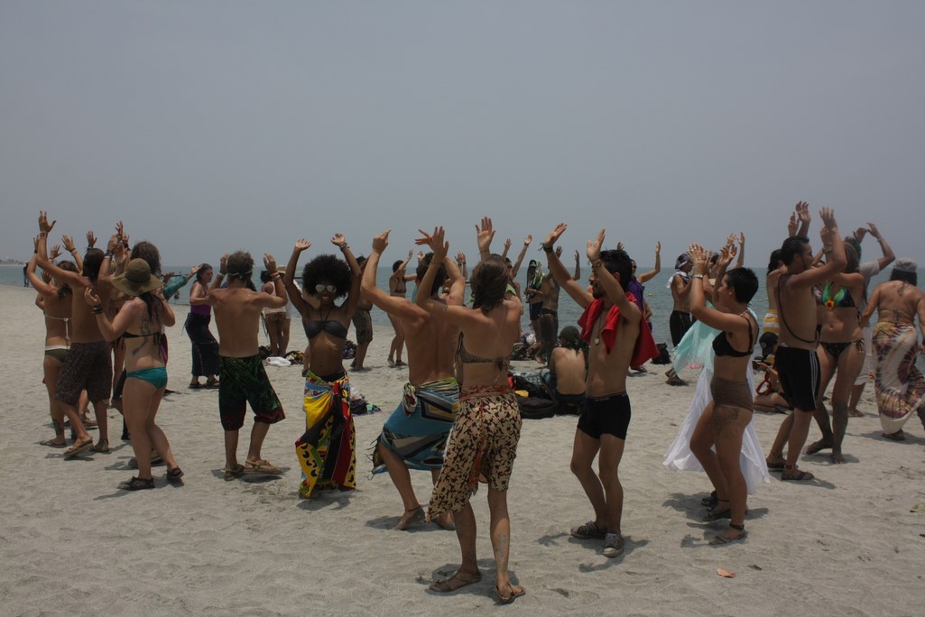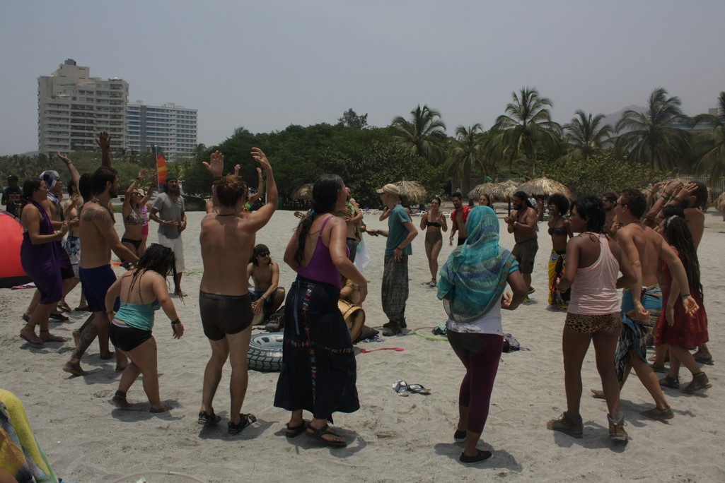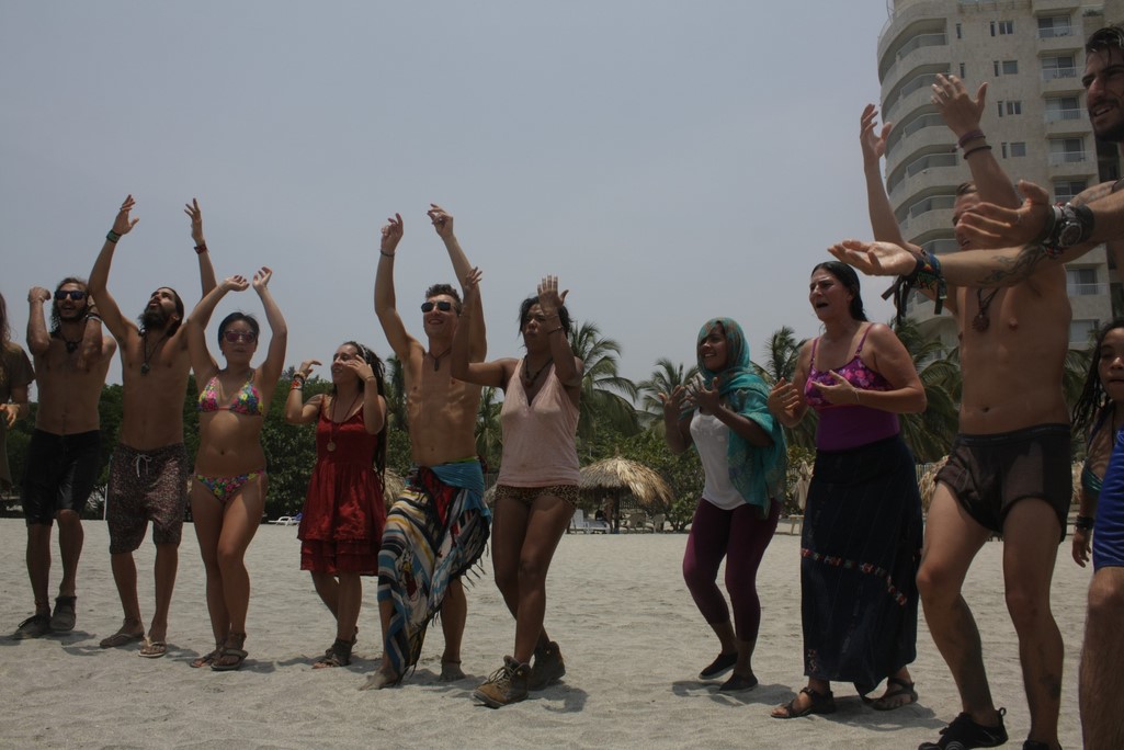 En la mañana del siguiente día fue la petición de las abuelas la que nos movió temprano a preparar una sorpresa que varios anhelaban, viajar a las orillas del mar a realizar una ceremonia de limpieza mediante un baño direccionado por la abuela Nesli y  unas hermosas Danzas de Paz universal guiadas por la abuela Ana María con el propósito de armonizarnos como familia para entrar en el territorio de Goloka que en principio, nos pidió llegar primero a Gambhira para poder estar dispuestos a recibir la medicina que nos querían entregar los mayores en este territorio.