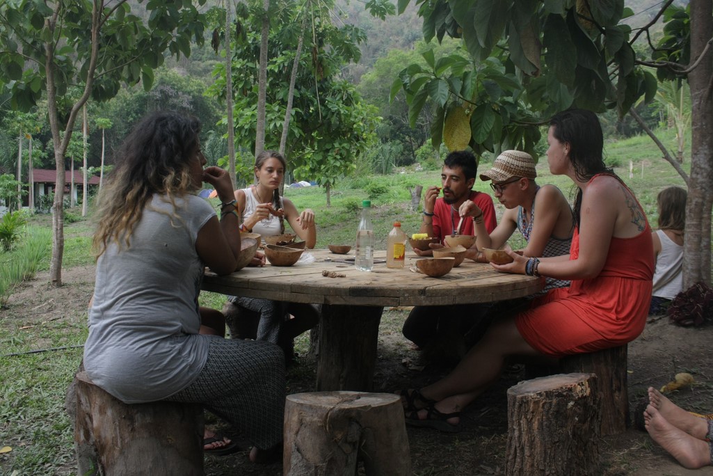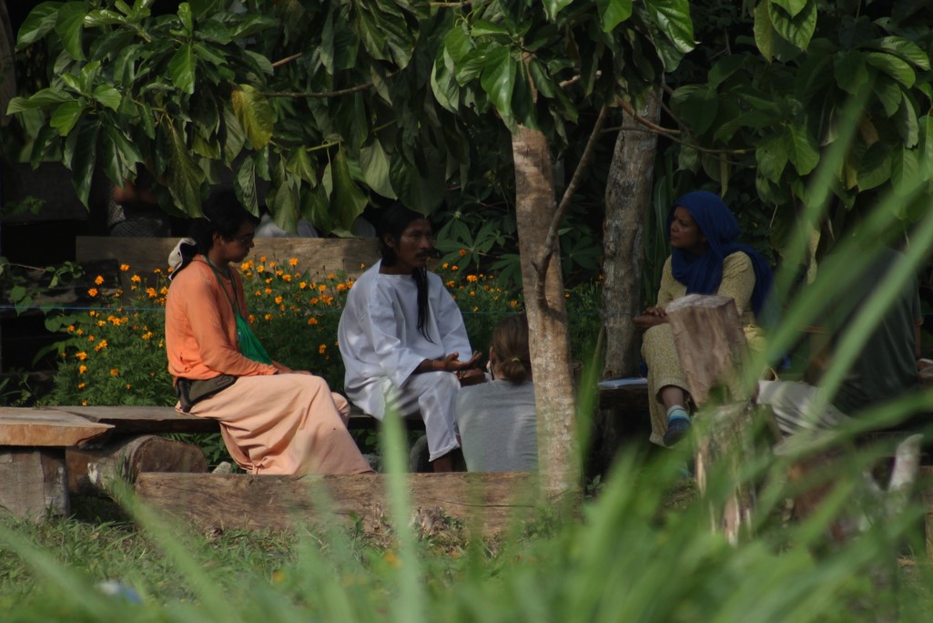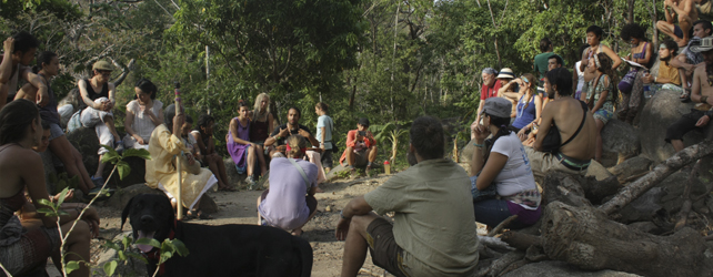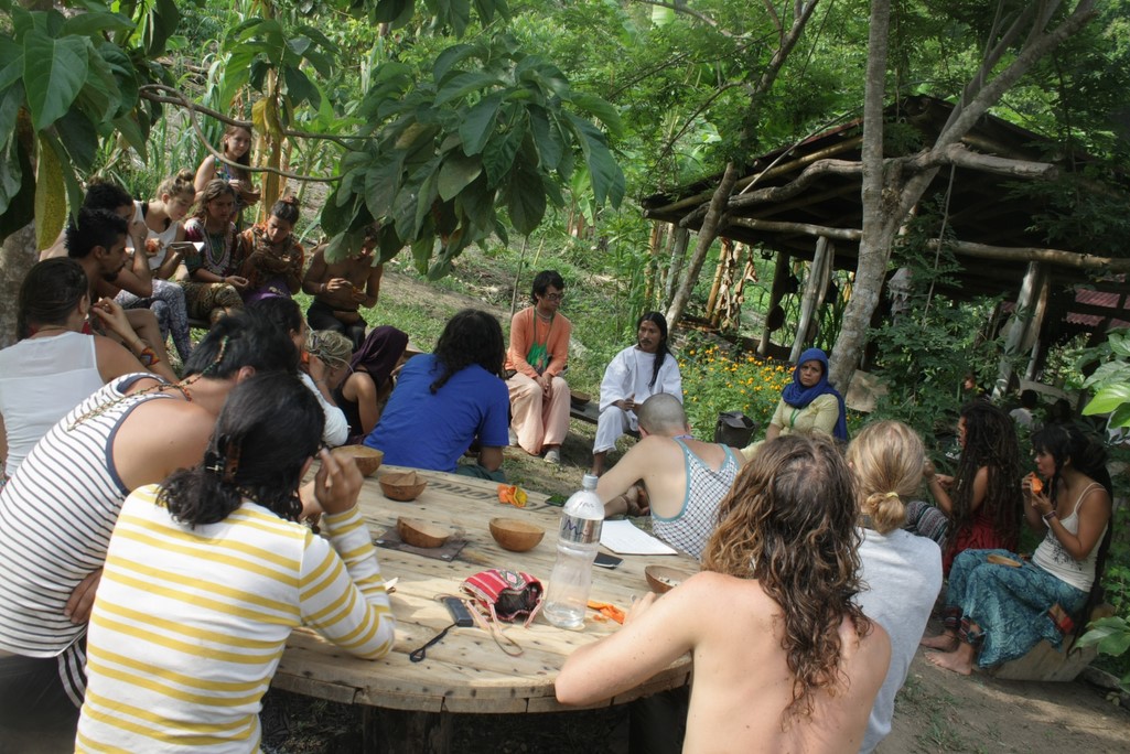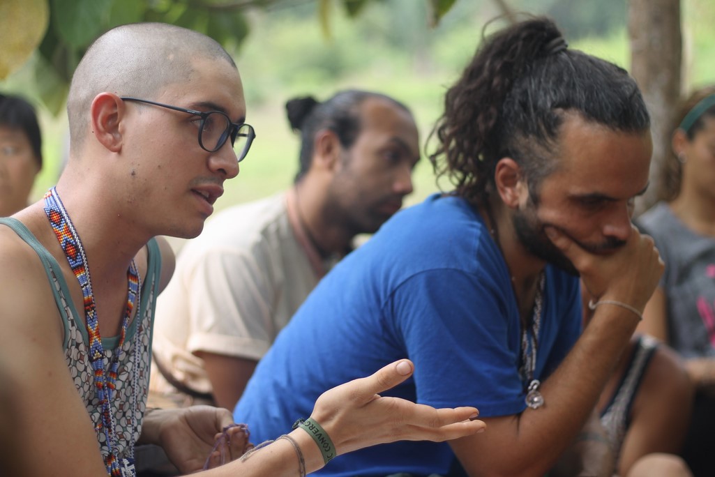 La ruta dio inicio con la llegada de mas de 60 admiradores de la sabiduría ancestral a la eco-yoga aldea Gambhira donde distribuimos el servicio de bio-construcción de una pequeña maloca de recepcion y el servicio de adecuar una de las terrazas ancestrales, que es uno de los salones de la Universidad de Sabiduría Ancestral permitiéndole a los asistentes aprender y aportar conocimientos que benefician a la humanidad y a los territorios que habita.